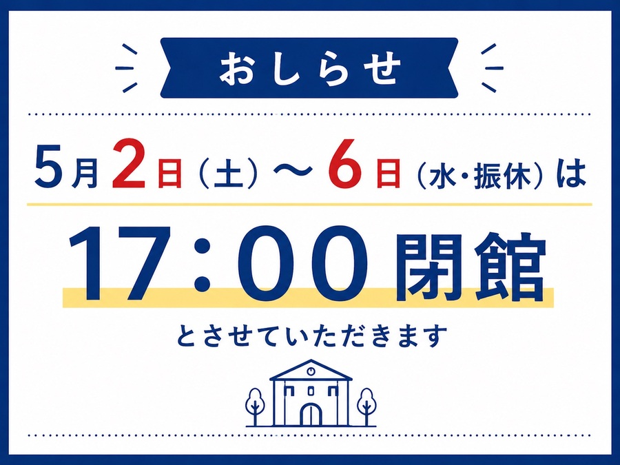 本日(2月8日)大雪のため17時閉館とさせていただきます